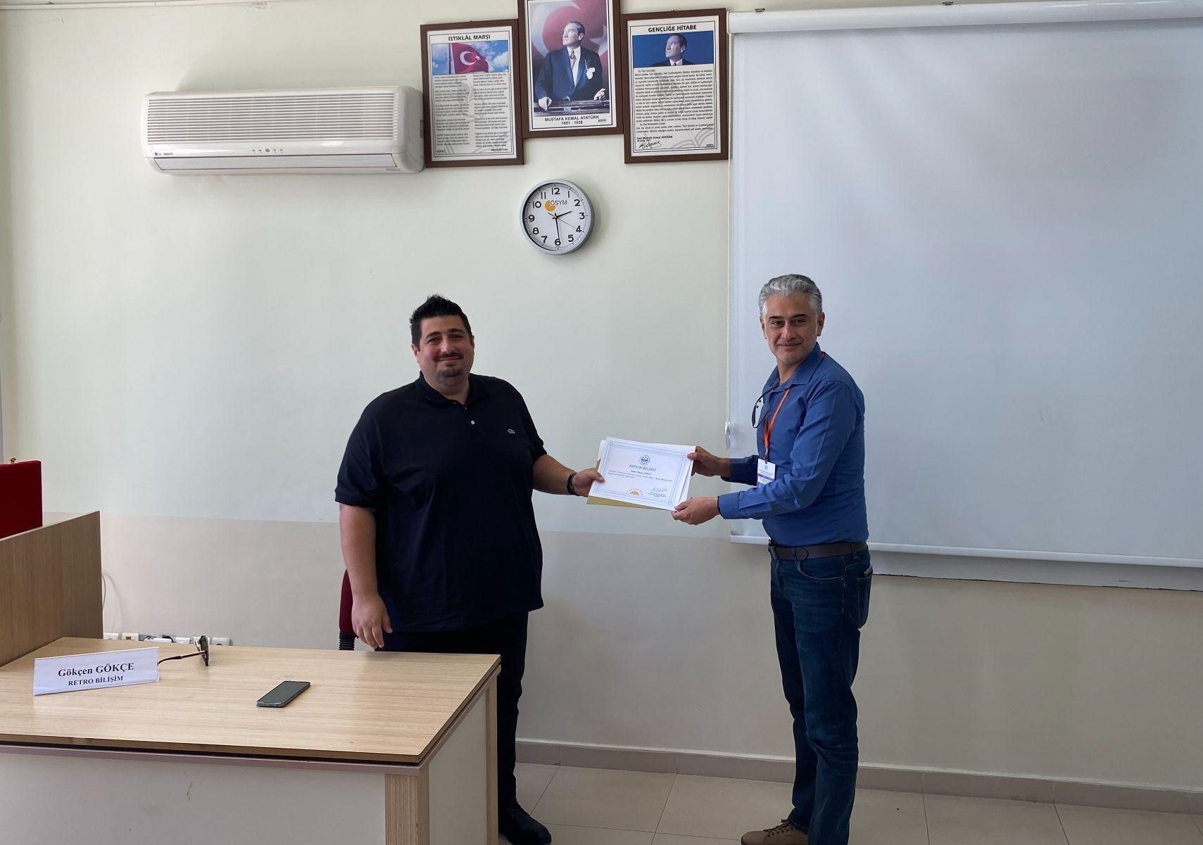 Sektör-Öğrenci Buluşması kapsamında RETRO BİLİŞİM’in kurucusu Gökçen GÖKÇE, iş hayatıyla ilgili önemli ipuçlarını ve tecrübelerini paylaştığı bir söyleşi gerçekleştirdi. Bu söyleşide, iş dünyasında nasıl davranılması gerektiği, işe girerken nelere dikkat edilmesi gerektiği, staj imkanları ve sıfırdan iş kurma fikirleri gibi konular detaylı bir şekilde ele alındı. Gökçen GÖKÇE, katılımcıların sorularını da yanıtladı ve iş hayatında başarılı olmanın yollarını paylaştı. Söyleşi soru-cevaplarla sona erdi ve söyleşinin ardından Yüksekokulumuz Bilgisayar Teknolojileri Bölüm Başkanı Doç. Dr. Mürsel Ozan İNCETAŞ tarafından Yüksekokulumuz adına Retro Bilişim’e ithafen onurluk ve söyleşiyi gerçekleştiren Gökçen GÖKÇE’ye de Katılım Belgesi takdim edildi.
