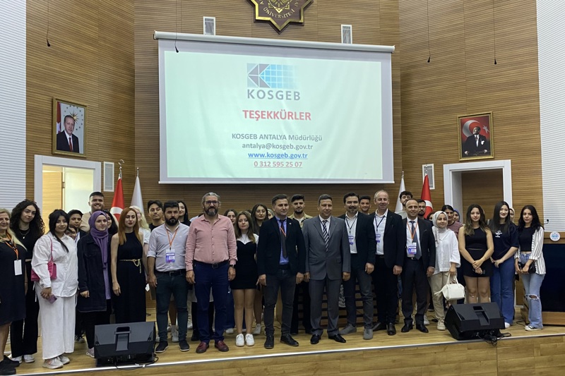 KOSGEB Antalya İl Müdürü ve aynı zamanda Yüksekokulumuz Sosyal Hizmet programı öğretim üyesi Dr. Öğr. Üyesi İbrahim Uğur ERKIŞ tarafından Yüksekokulumuzun tüm bölümlerine ve üniversitemiz öğrencilerine yönelik yapılan söyleşide; KOSGEB’in yapısı ve çalışmaları hakkında bilgi verildi. Uygulamada olan ve getirilen yenilikler ile 25 yaşını geçmeyen genç girişimcilere yönelik girişimcilik ve istihdam desteklerinden bahsedildi. Söyleşinin bitiminde KOSGEB Antalya İl Müdürü Dr. Öğr. Üyesi İbrahim Uğur ERKIŞ’a Yüksekokulumuz Müdürü Prof. Dr. Serdar BULUT tarafından Teşekkür Belgesi takdim edildi ve akabinde Yüksekokulumuz şilti ile onurluk hediye edildi. Söyleşi toplu fotoğraf çekimi ile sona erdi.
