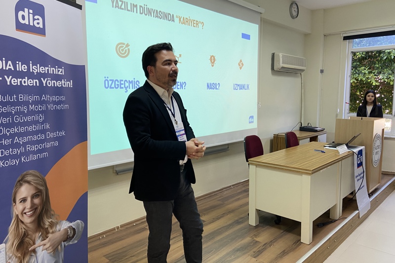 DİA Yazılım A.Ş. CEO’su Suha ONAY tarafından Öğr. Gör. Erdal YENİALP moderatörlüğünde gerçekleştirilen söyleşide; yazılım dünyası ve muhasebe yazılımlarının geleceği hakkında bilgiler verildi. Aynı zamanda DİA yazılımının oluşumu ve gelişimi hakkında da bilgiler verildi. Muhasebe sektöründe yazılımın yeri ve bulut teknolojilerinden de bahsedilen söyleşinin soru-cevap kısmında Suha ONAY tarafından izleyicilerin soruları içtenlikle yanıtlandı. Söyleşiyi çok sayıda Yüksekokulumuz akademik personeli ile öğrenciler takip etti. Salondaki izleyicilerin keyifle takip ettiği söyleşinin bitiminde Suha ONAY’a Teşekkür Belgesi takdim edildi ve akabinde DİA Yazılım adına onurluk hediye edildi. Söyleşi toplu fotoğraf çekimi ile sona erdi.