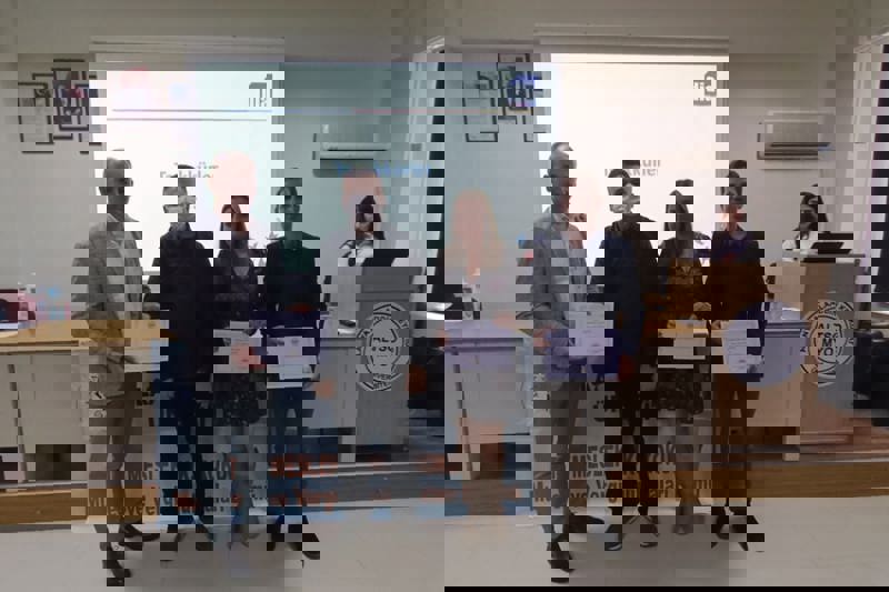 Sunumun ardından Yüksekokulumuz Müdür Yardımcısı Doktor Öğretim Üyesi Ömer Emre ARSLAN, DİA yetkililerine teşekkür belgelerini taktim etti.