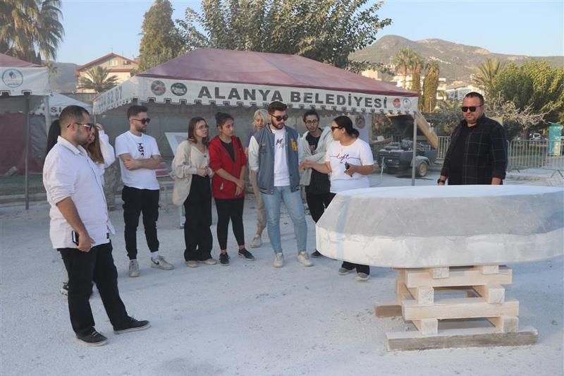 Meslek Yüksekokulumuz Tasarım Bölümü İç Mekân Tasarımı Programı Öğr. Gör. Serdar ASLAN ve bölüm öğrencileri 17. Alanya Uluslararası Taş Heykel Sempozyumunu ziyaret ederek sanatçıların yapmış oldukları eserlerin üretim aşamalarını incelediler. Aynı zamanda Malzeme ve Yapı Bilgisi dersleri kapsamında teorik olarak bilgi edindikleri taş ve türleri hakkında sanatçılardan kapsamlı bilgiler aldılar. Sanatçılar ile sohbet eden öğrenciler plastik sanatlar, heykel ve rölyef uygulamaları ile ilgili kapsamlı bilgiler edindiler.