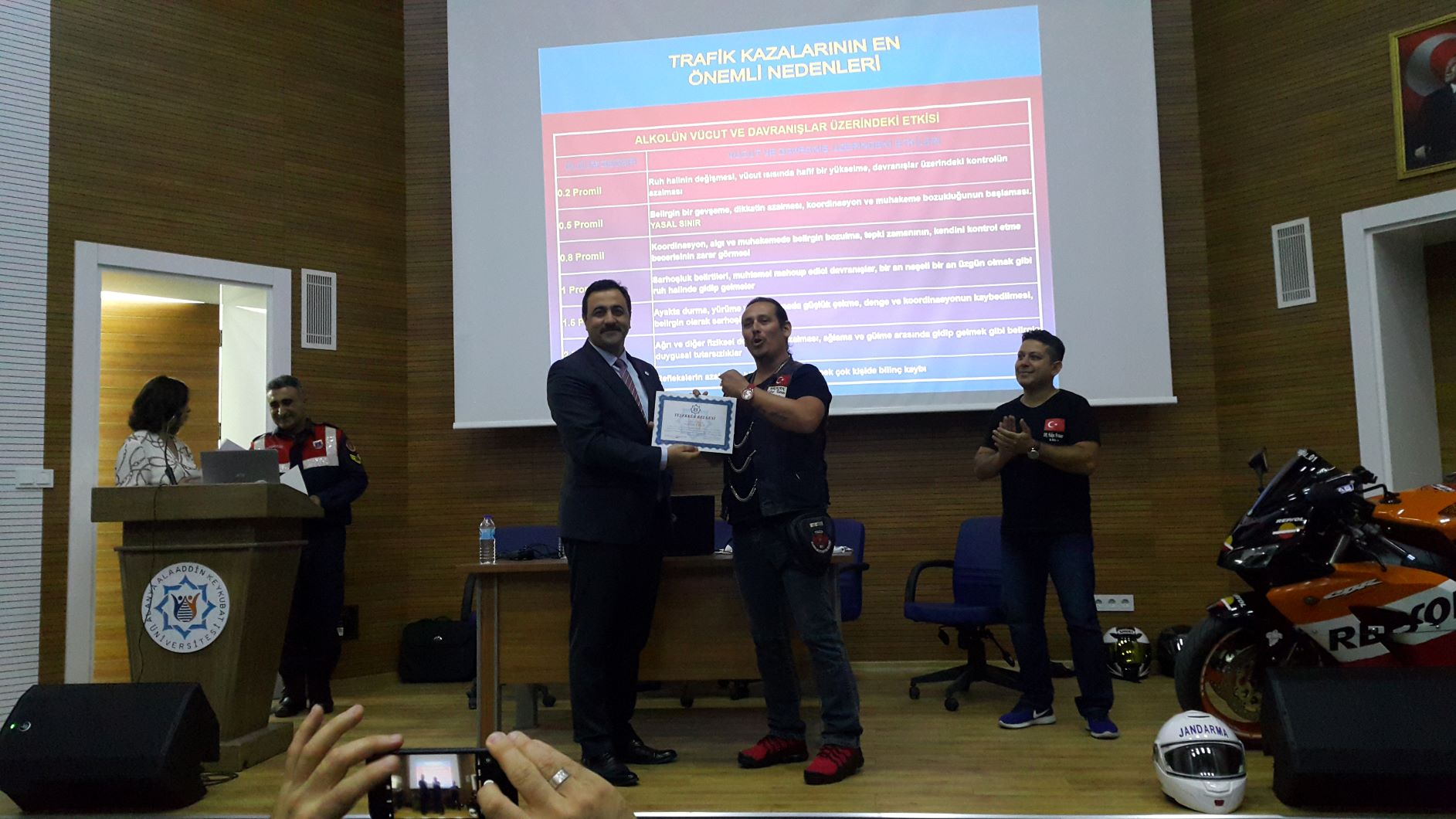 Alanya Alaaddin Keykubat Üniversitesi, Alanya İlçe Jandarma Komutanlığı, Alanya Moto Spor Kulübü ve Tümay Razgatlıoğlu T.T.A. Motosiklet Kulübü destekleri ile Altso Meslek Yüksekokulu, Tasarım Bölümü / İç Mekân Tasarımı Programı Öğr. Gör. Serdar ASLAN Koordinatörlüğünde, Eğitim Fakültesi Konferans salonunda 24 Ekim 2019, 13:30 da Trafik Ve İki Tekerlekli Taşıtlarda Kask İle Koruyucu Ekipmanların Önemi Konferansı düzenlenmiştir.
